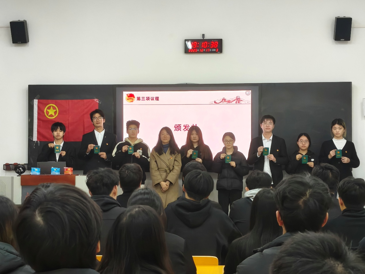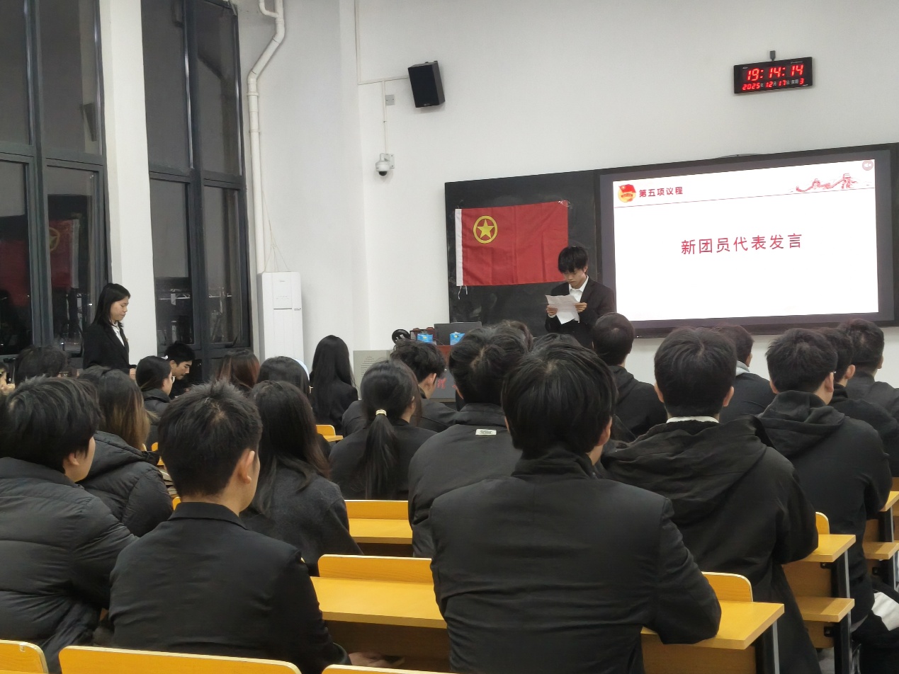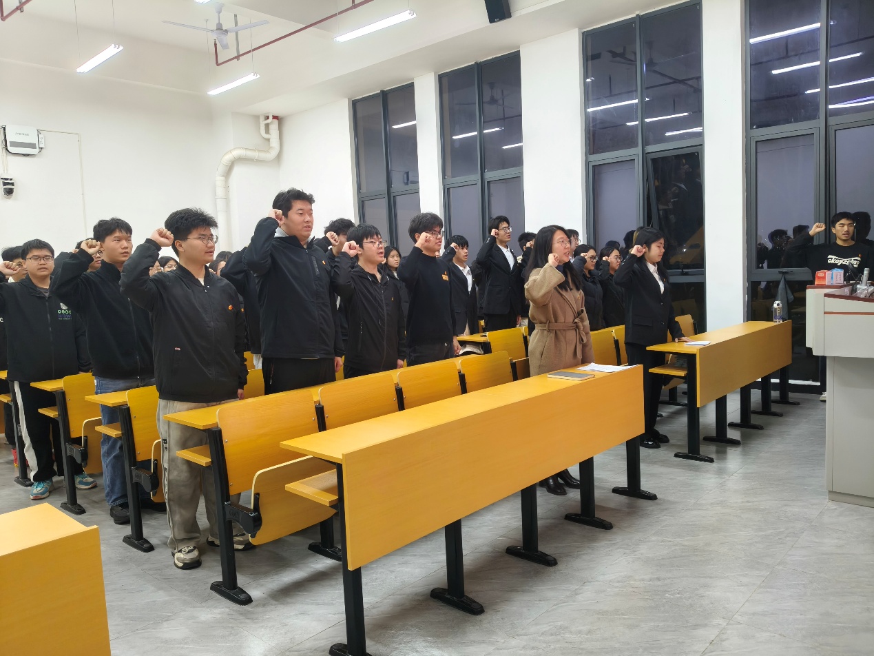 本网讯 12月17日,我院2025新团员入团仪式于三江校区西园阳明楼103举行。我院学工办副主任兼团委副书记陈琰、部分团员代表与34位新团员齐聚一堂,共同见证这一重要时刻。仪式由院团委组织部副部长孙苏琪主持。