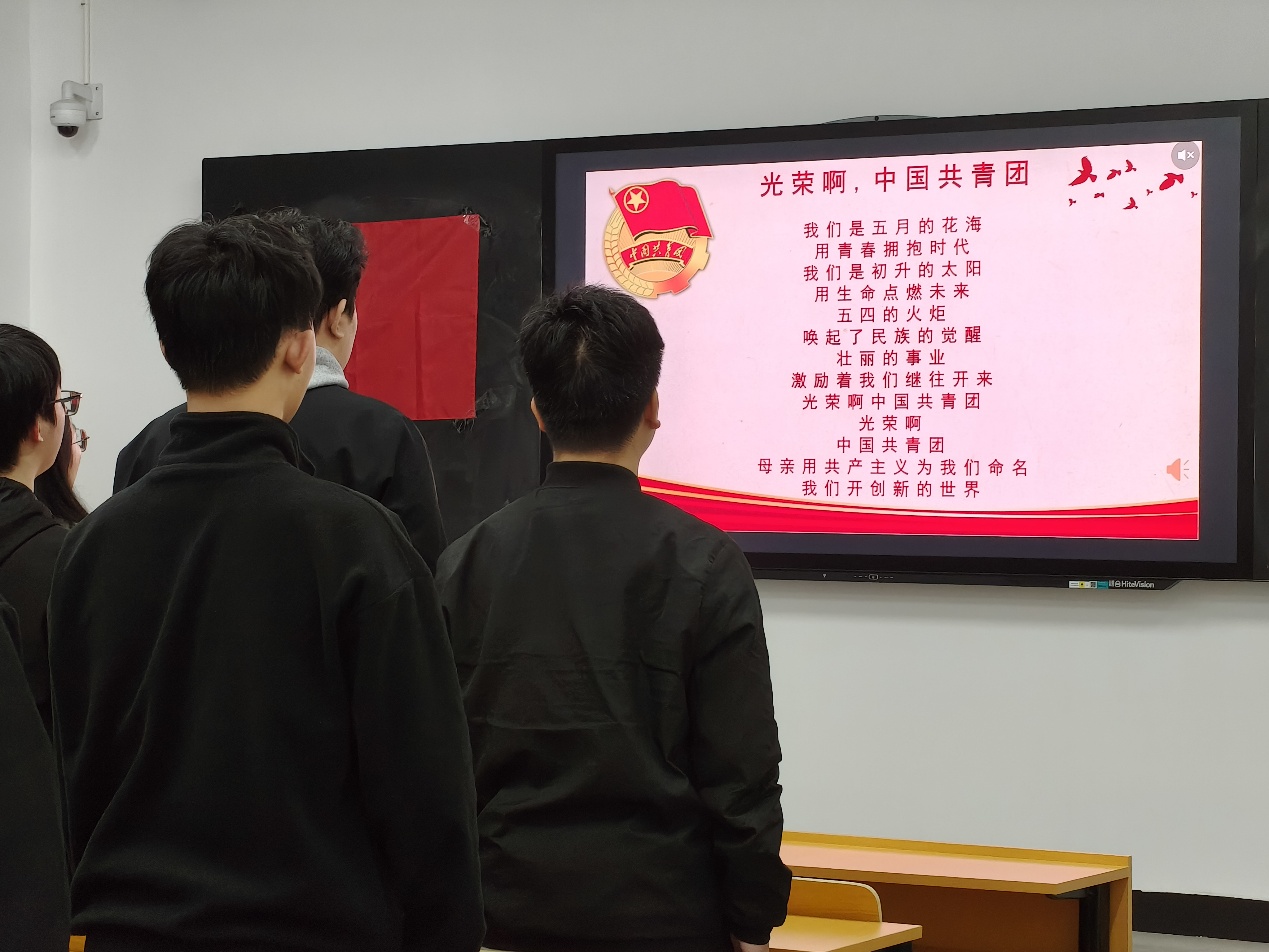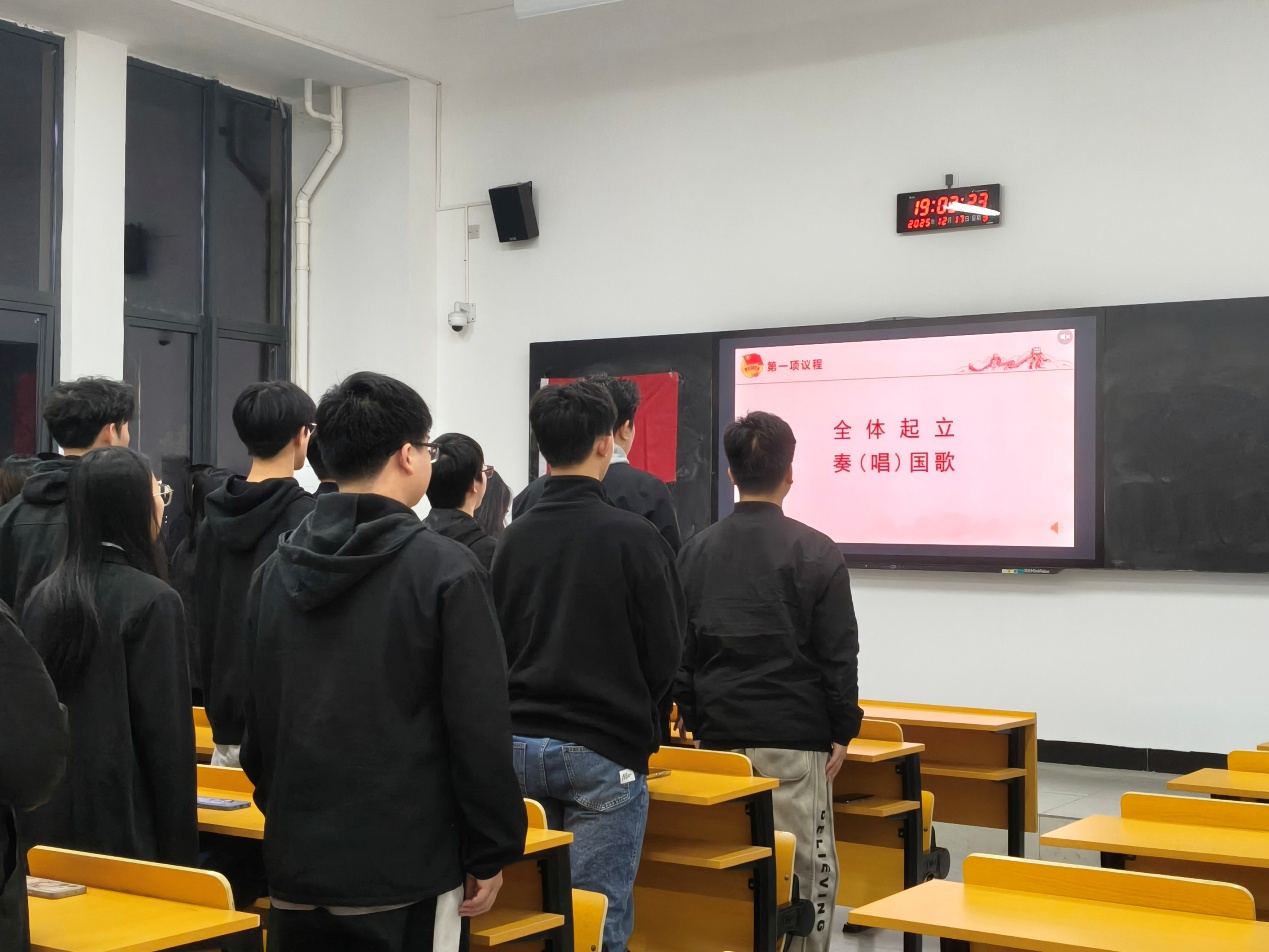 入团仪式在庄严肃穆的国歌声中拉开帷幕。全体人员肃然而立,铿锵有力的旋律在教室里回响,犹如时代的脉搏在每一个青年心中跳动。鲜红的团旗在灯光下熠熠生辉,与那一张张年轻而坚定的面庞相互映照。歌声承载着历史的重量与未来的召唤,让这一刻不仅仅是一个仪式,更成为精神传承的庄严起点,为整个活动奠定了崇高而热血澎湃的基调。