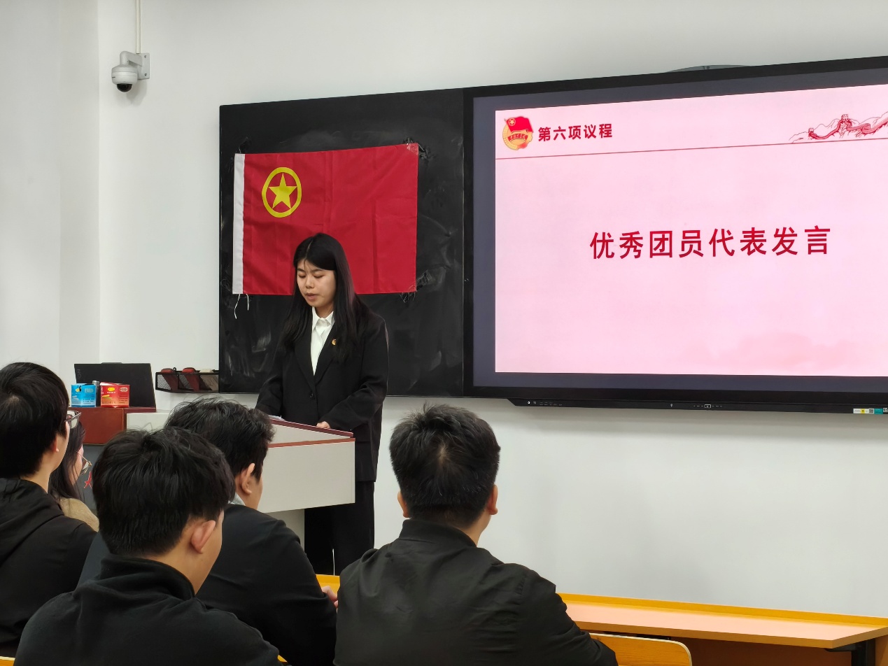 胡鑫同志作为新团员代表登台发言。“入团不是终点,而是新的起点。”他话语中充满加入共青团的激动,也饱含履行团员使命的责任担当。他表示,今后将以团员标准严格要求自己,在学习和实践中走在前、作表率,努力让青春在团组织的培养下焕发更耀眼的光芒。