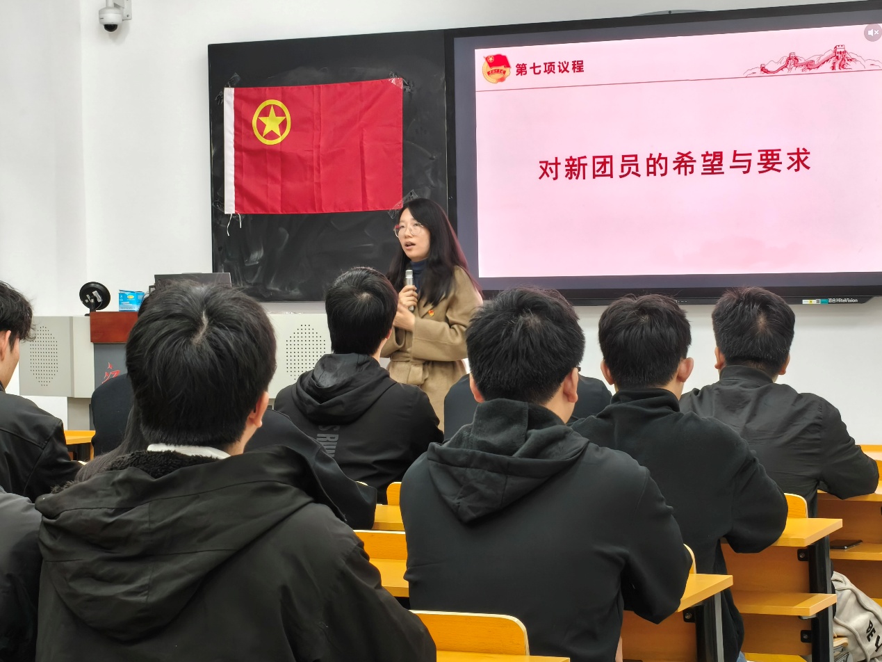 陈琰老师作为党组织代表,向新团员们提出寄语与期望。她指出,共青团是党的忠实助手和可靠后备军,是与党同心同德、血脉相连的青年政治组织。她勉励新团员们:一要永葆政治本色,在理论学习中厚植忠诚品格;二要练就扎实技能,在实践锻炼中增强成才底气;三要勇担时代责任,在奉献社会中展现青年价值。她期盼大家始终将个人奋斗汇入民族复兴的征程,用青春行动书写“请党放心,强国有我”的崭新篇章。