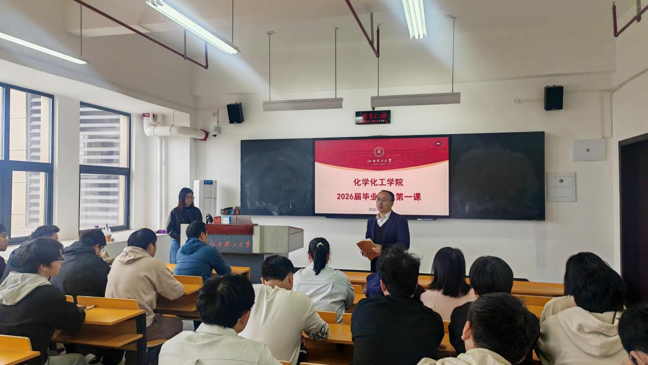 院长李金辉教授结合自身经历、行业发展与当前国家需求,为同学们带来“就业第一课”专题分享。他深入剖析了当前就业形势与化工行业人才需求趋势,鼓励同学们将个人发展融入国家战略,在服务产业升级中找准定位;同时,他结合历年指导经验,从求职定位、简历优化、面试准备等方面提出实用建议,叮嘱同学们主动适应市场需求、拓宽就业视野,在实践探索中明晰职业方向。