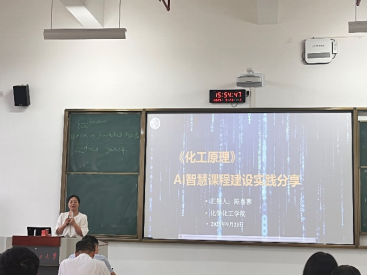 随后,第五届全国高校教师教学创新大赛国赛一等奖获得者陈喜蓉老师以《化工原理》课程为例,分享了AI智慧课程建设的实践经验。她结合获奖经历,生动展示了AI工具在课程设计、课堂互动与教学评价中的具体应用,为我院教师提供了宝贵借鉴。