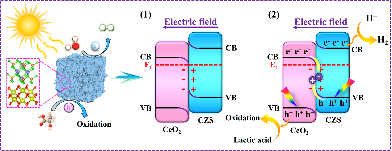 图5.S型CZS-CeO2异质结的光催化产氢反应机理图。